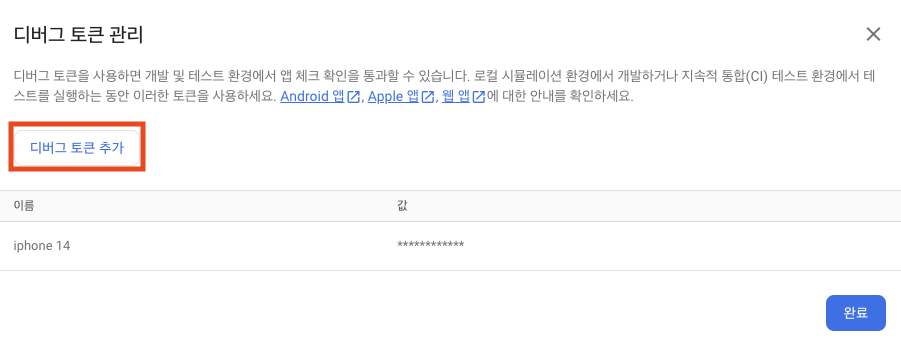 이런게 있어서 시도해보았으나 Firebase App Check Debug Token이 아무리해도 안찍혀서