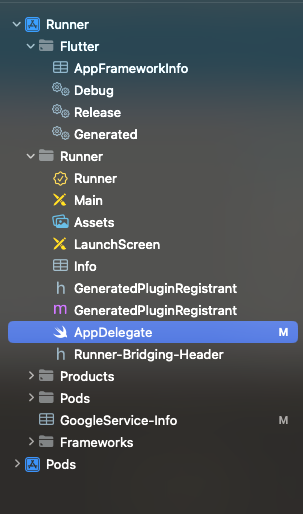 flutter 폴더에서 ios 폴더에 들어가서 Runner.xcworkspace 파일을 연다.