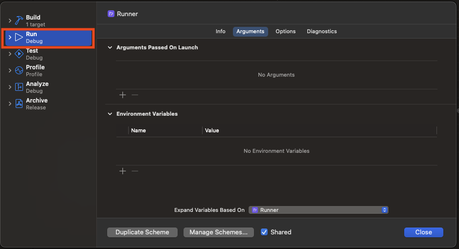 Runner 스키마를 클릭해주고 그다음 Edit Scheme를 클릭한다