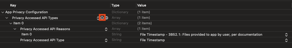 - NSPrivacyAccessedAPICategoryFileTimestamp