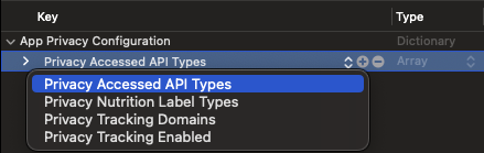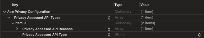 - NSPrivacyAccessedAPICategoryUserDefaults