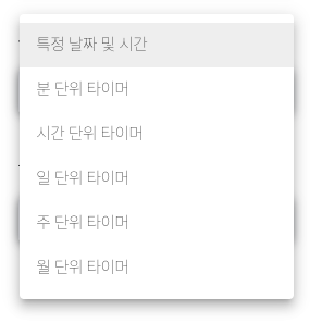 근데 시간 간격을 바꾸고 싶다면 트리거 기반 시간 유형 선택에서 시간 단위 타이머를 클릭하면
